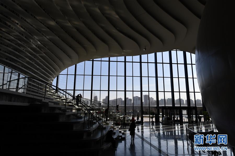 這是12月27日拍攝的天津?yàn)I海新區(qū)圖書館中庭。 濱海新區(qū)圖書館位于天津?yàn)I海文化中心,2017年10月1日正式開館,設(shè)計(jì)立意為“濱海之眼”和“書山有路勤為徑”。圖書館現(xiàn)有藏書60多萬冊(cè),一年多來接待讀者約280萬人次,已成為濱海新區(qū)的文化“新地標(biāo)”。 新華社記者李然攝