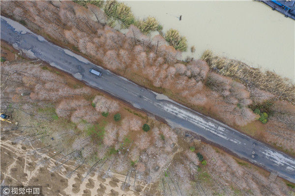 2018年12月27日,江蘇淮安,航拍京杭大運(yùn)河淮安段冬日景色。