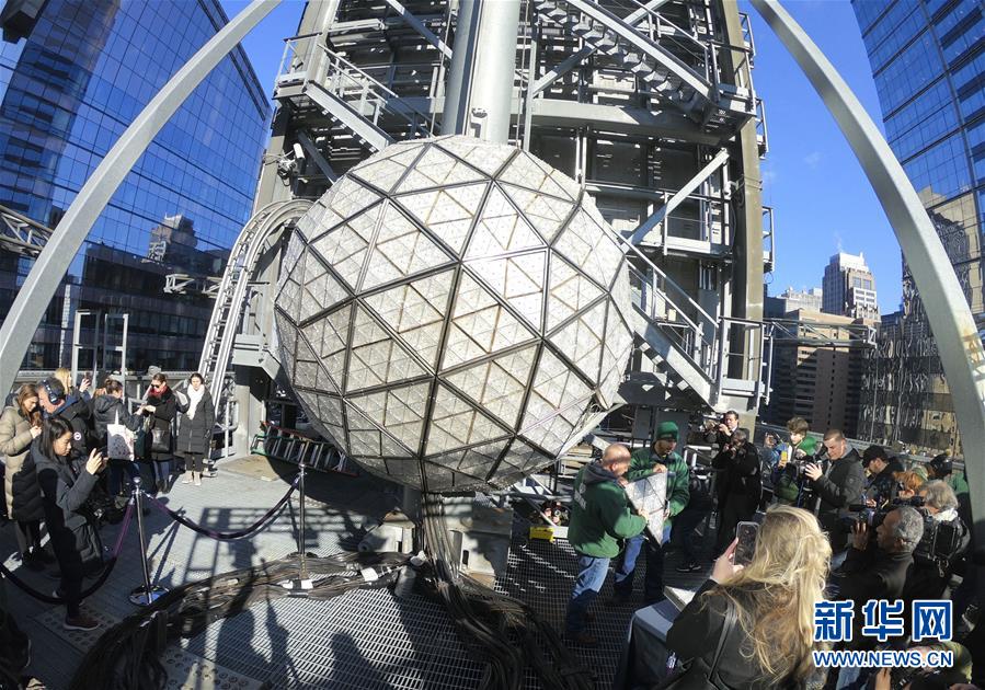 這是12月27日在美國紐約時報廣場拍攝的水晶球安裝現場。 每年12月31日晚,紐約時報廣場都會舉辦跨年慶典,當午夜鐘聲響起之時,水晶球緩緩落下,慶祝新的一年到來。 新華社記者 張墨成 攝