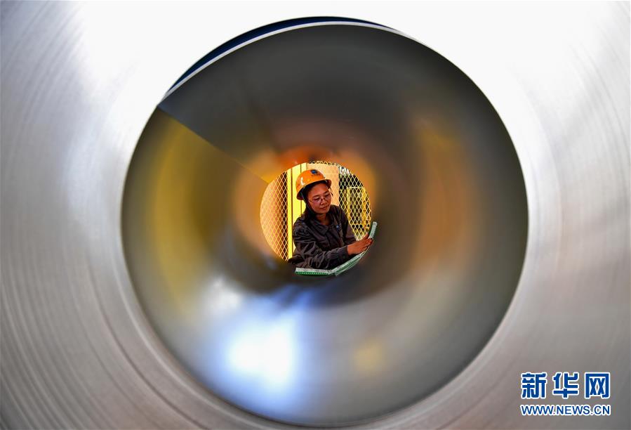 這是唐山市一家汽車鋼板生產(chǎn)企業(yè)的工人在給剛生產(chǎn)出的鋼板粘貼批號標(biāo)簽(4月25日攝)。