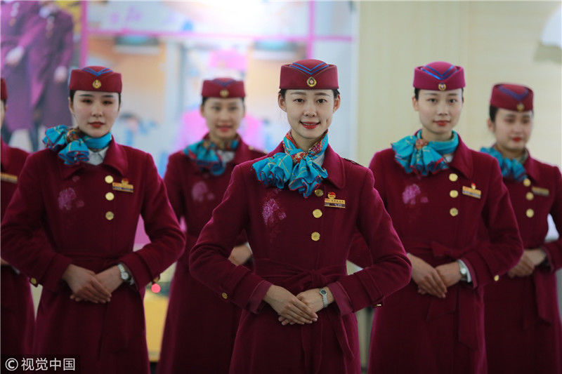2018年12月27日,四川成都,為備戰(zhàn)即將開通的成雅鐵路,中國鐵路成都局集團有限公司成都客運段動車二隊對成雅動車的乘務(wù)人員進行理論、形體、服務(wù)禮儀等內(nèi)容的培訓(xùn)。