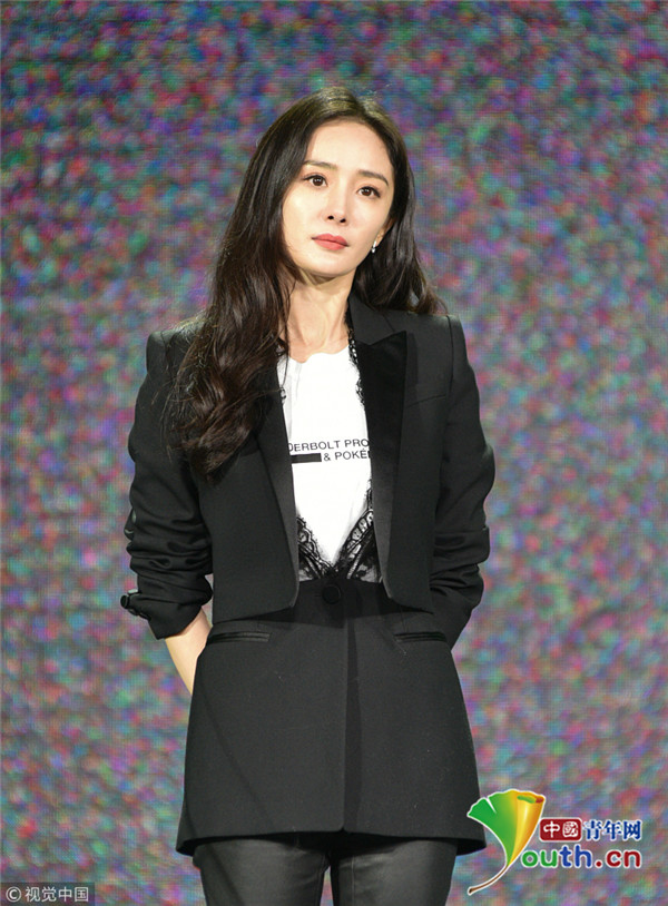 楊冪上臺領獎西裝精致干練 談話間舉手顯呆萌