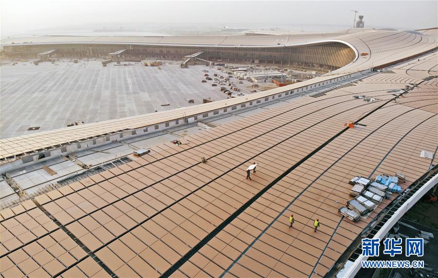 2019年1月1日,工人在北京大興國(guó)際機(jī)場(chǎng)工地冒著嚴(yán)寒施工(無(wú)人機(jī)拍攝)。 當(dāng)日是新年第一天,眾多勞動(dòng)者忙碌在工作崗位上。 新華社記者 才揚(yáng) 攝