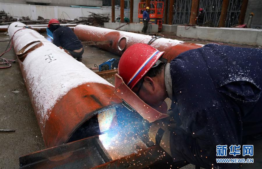 12月30日,南昌市洪都大道快速化改造工程項(xiàng)目工地上,中鐵四局五公司職工冒雪作業(yè)。新華社記者宋振平攝
