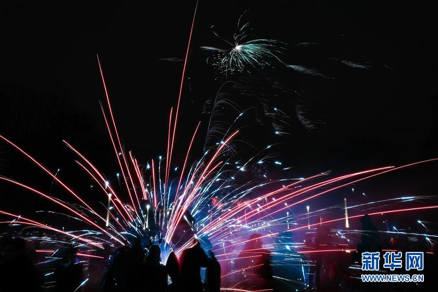 1月1日,比利時(shí)首都布魯塞爾上空煙花綻放。 新華社記者鄭煥松攝