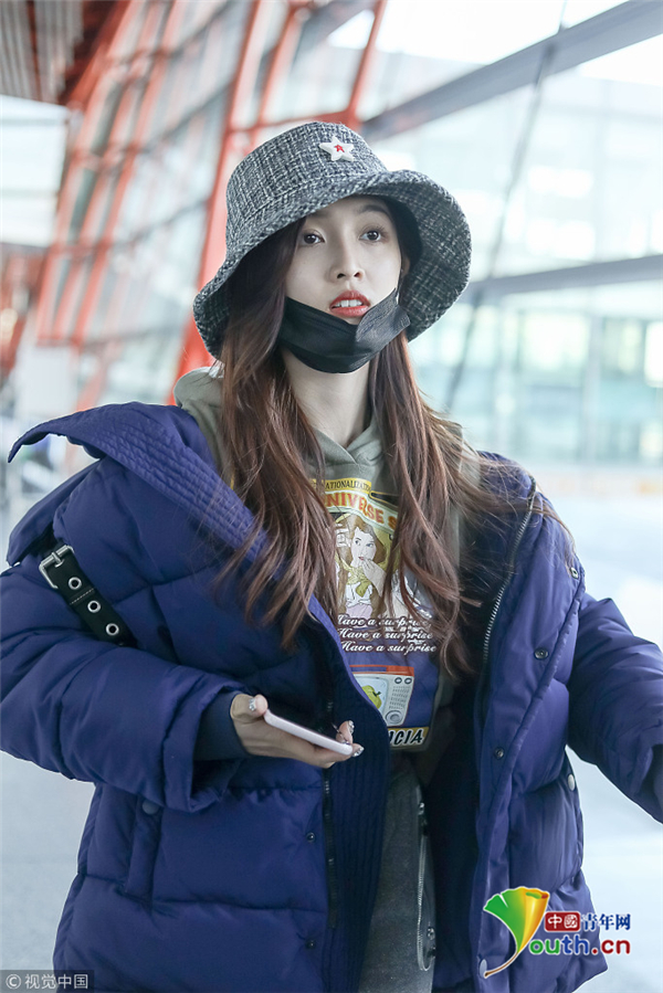1月1日,北京,吳宣儀現(xiàn)身機場。外帶著漁夫帽的她嘟嘴顯可愛,裹著厚重羽絨服認真過冬超保暖。