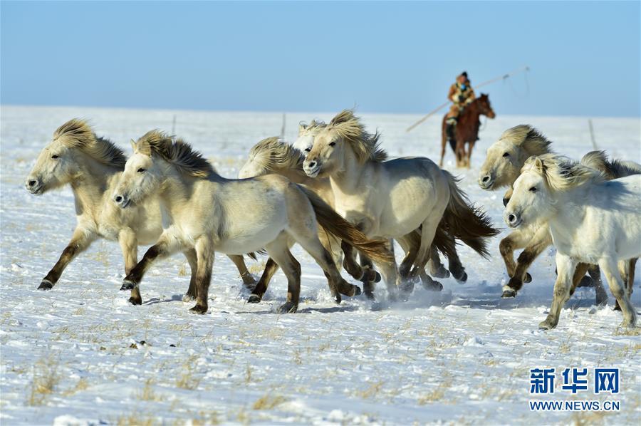 1月8日,牧民進行套馬表演。 時下正值草原冬季旅游旺季,內(nèi)蒙古自治區(qū)西烏珠穆沁旗的牧民們在雪原上一展身手,為游客展現(xiàn)獨特的民族風(fēng)情。 新華社記者 鄒予 攝