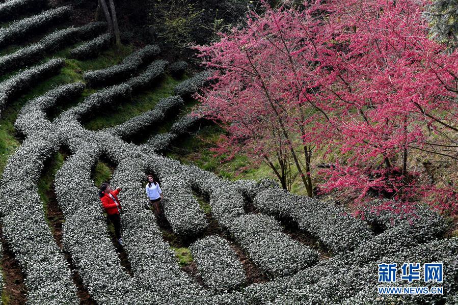 福建省連城縣賴源鄉(xiāng)黃宗村海拔1000余米的高山茶園面積約千畝,園內(nèi)套種一萬(wàn)余棵櫻花樹(shù)。寒冬時(shí)節(jié),綻放的櫻花與綠色茶園相互映襯,宛如一幅田園畫卷。