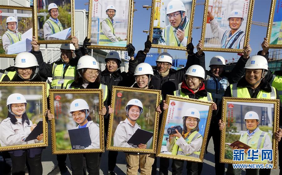 1月9日,中建一局北京城市副中心周轉(zhuǎn)房項目工地的建筑工人在展示自己的照片。 當日,由北京市總工會主辦的工會“兩節(jié)”送溫暖活動之一的“把微笑帶回家,為最美勞動者點贊”大型公益活動,在中建一局北京城市副中心職工周轉(zhuǎn)房項目工地舉行。眾多勞動者獲贈“微笑”肖像照和保溫壺、毛巾等新春“大福包”。 新華社記者 李欣 攝