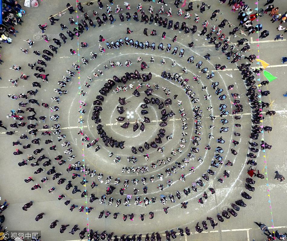 11月20日報(bào)道,2018年11月19日,侗族同胞在參加貴州省從江縣慶云鎮(zhèn)“凍魚節(jié)”踩歌堂。(無人機(jī)拍攝)2018年11月19日,貴州省從江縣慶云鎮(zhèn)境內(nèi)的石姓侗族同胞迎來傳統(tǒng)一年一度的“凍魚節(jié)”,當(dāng)?shù)囟弊逋碇?jié)日盛裝舉行祭薩、踩歌堂、賽侗歌,慶祝豐收,祈福來年風(fēng)調(diào)雨順,五谷豐登。