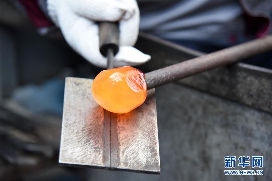1月12日,孫云毅在制作雞油黃琉璃藝術品。 新華社記者王凱攝