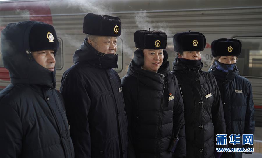 1月11日,在滿洲里火車站站臺,由于氣溫近零下30攝氏度,“金鑰匙”服務(wù)臺客運(yùn)員“呵氣成霧”。