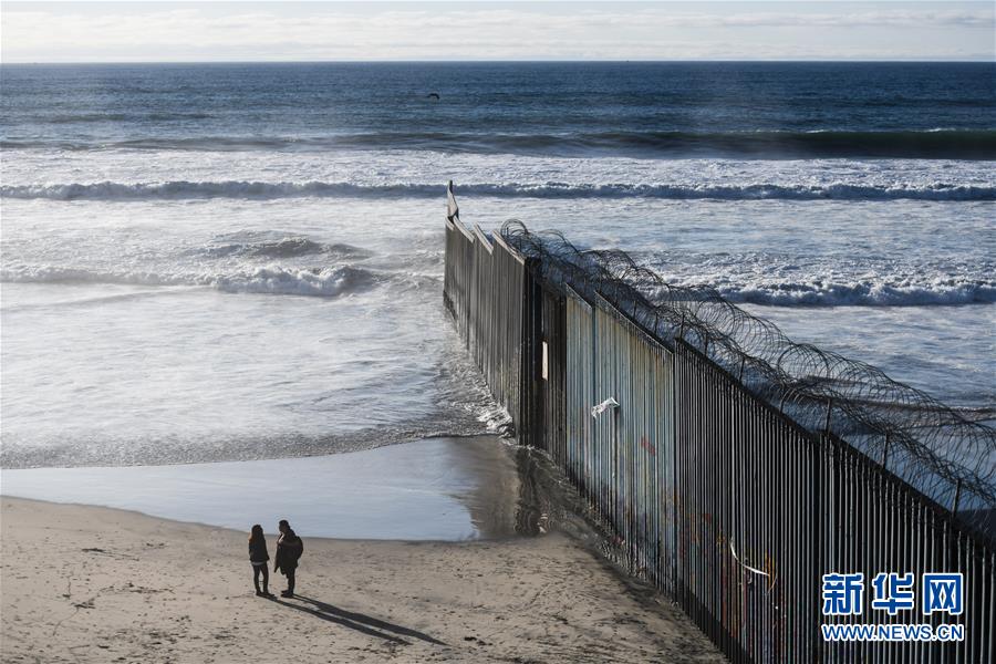 在墨西哥邊境城市蒂華納的海岸邊,一堵數米高的邊境隔離墻從海水中豎起,向東延伸,不見盡頭。這里便是美國和墨西哥邊境隔離墻的起點,曾經有不少來自拉美的移民選擇在夜間從這里游過邊境墻進入美國,但由于風大浪急,十分兇險,不少人丟了性命。 新華社記者 辛悅衛(wèi) 攝