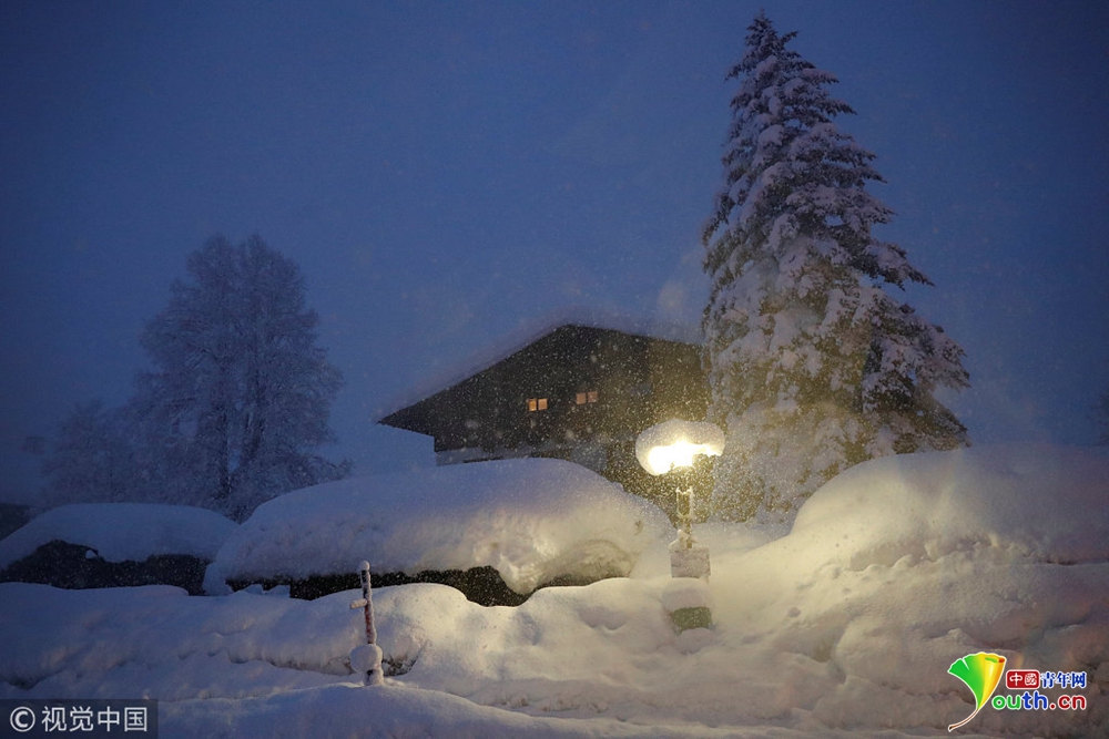 奧地利暴風(fēng)雪持續(xù) 公交車站被積雪掩埋