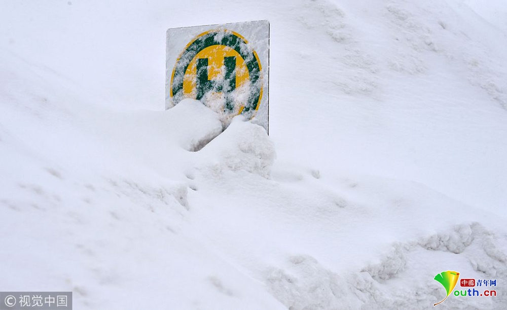 奧地利暴風(fēng)雪持續(xù) 公交車站被積雪掩埋