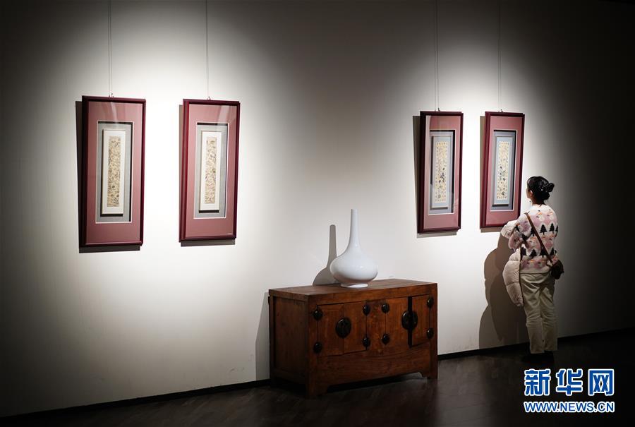 1月14日,一名讀者在西安市未央?yún)^(qū)一家書城的藝術品售賣區(qū)參觀。