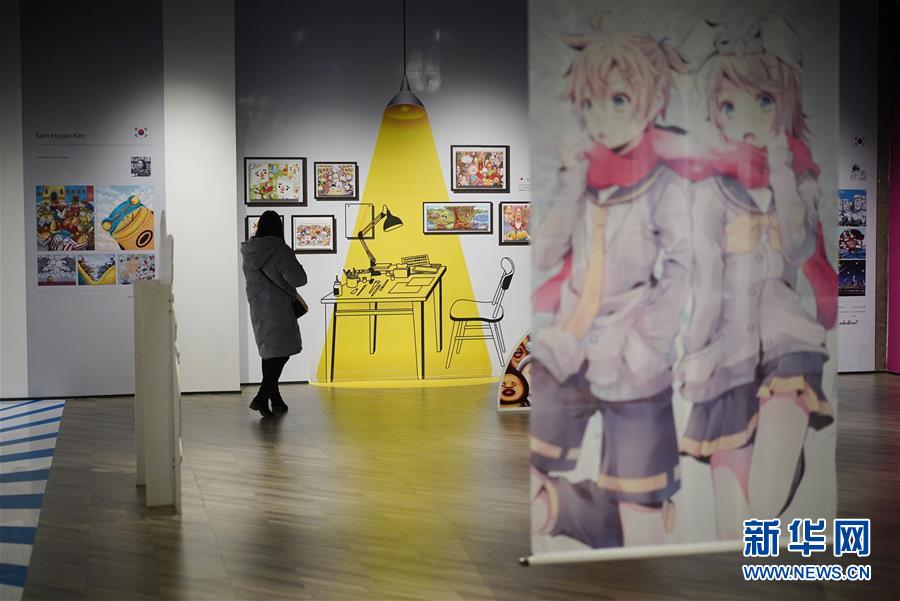 1月14日,一名讀者在西安市未央?yún)^(qū)一家書城的亞洲插畫展覽區(qū)參觀。