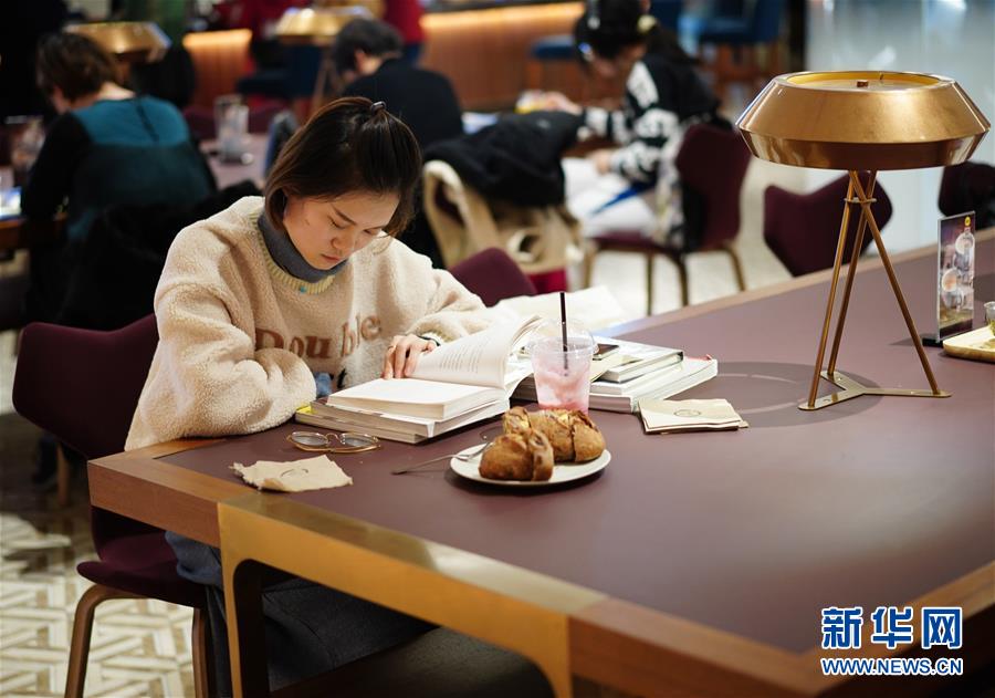 1月14日,讀者在西安高新區(qū)一家大型書店內讀書休閑。