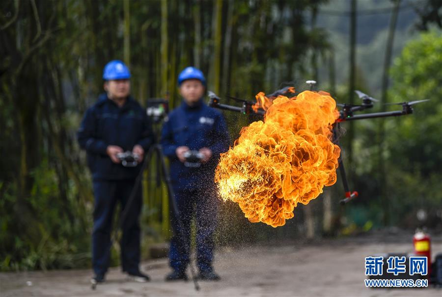 1月16日,噴火清障無人機在國網(wǎng)重慶永川供電公司無人機班兩名操作手的控制下進行噴火清障作業(yè)演示。 1月16日,經(jīng)過3年多的研發(fā)和測試,重慶首臺噴火清障無人機在國網(wǎng)重慶永川供電公司無人機班正式投用。這臺多旋翼無人機,通過搭載帶有燃料箱、油泵、自動點火裝置的噴火吊艙任務(wù)模塊,可以對影響高空電力線路安全的飄掛物進行定點障礙清除作業(yè)。 據(jù)噴火清障無人機研發(fā)負責人何濤介紹,過去高空清除異物主要靠人工進行,為保證安全經(jīng)常需要停電作業(yè),因此他們結(jié)合實際工作經(jīng)驗和高空電力線路的自身特點,設(shè)計和制造出了噴火清障無人機。2018年測試期間,國網(wǎng)重慶永川供電公司無人機班在多種環(huán)境下成功執(zhí)行了50多次高空電力線路清障作業(yè)。 新華社記者 劉潺 攝
