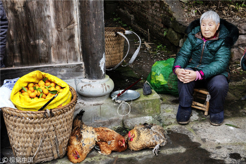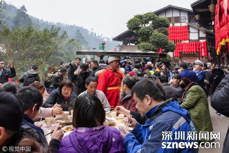 2019年1月26日,重慶中山古鎮(zhèn),880桌“千米長宴”5萬人共品年味。當地趕來的村民。
