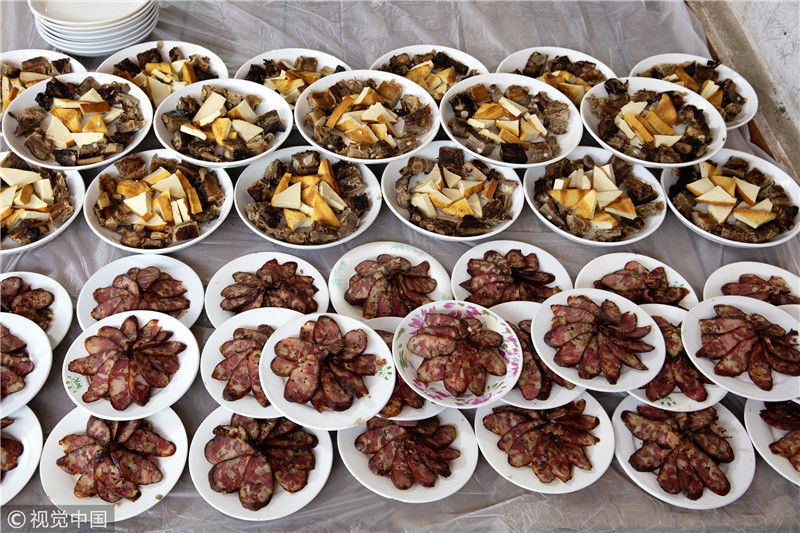 2019年1月26日,重慶中山古鎮(zhèn),880桌“千米長宴”5萬人共品年味。880多張席桌在老街屋檐下一字?jǐn)[開,“千米長宴”正式開席。周智勇/視覺中國