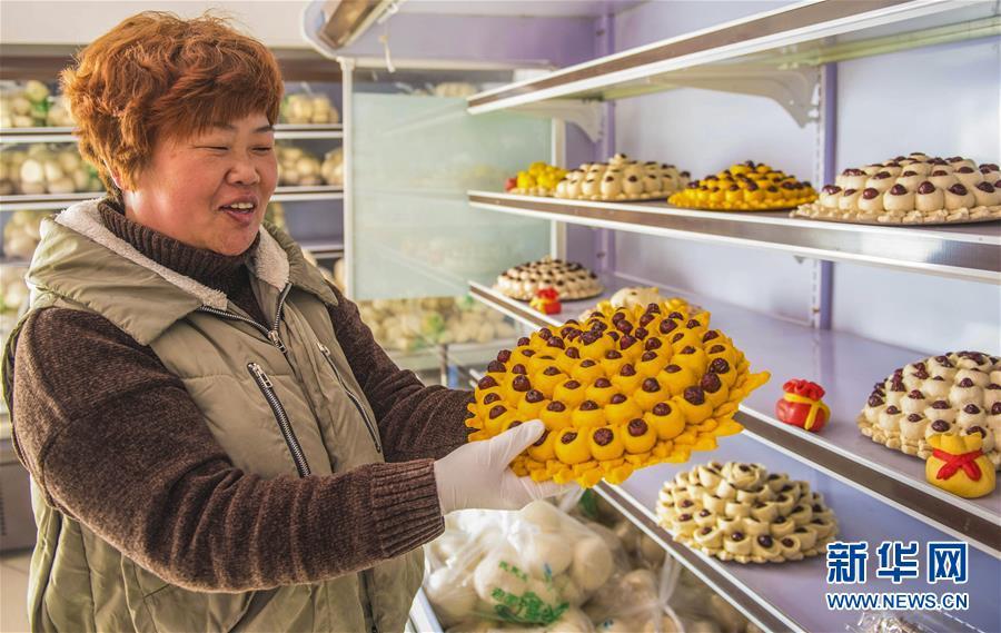 1月25日,在河北棗強(qiáng)一家食品公司的門市部,顧客在挑選花糕。 春節(jié)臨近,河北省棗強(qiáng)縣面食加工廠的面點(diǎn)師傅們忙著趕制花糕、花饃等傳統(tǒng)面食,以供應(yīng)節(jié)日市場(chǎng)。當(dāng)?shù)赜羞^年蒸花糕、做花饃的習(xí)俗,寓意步步登高,生活一年比一年好。 新華社記者 李曉果攝