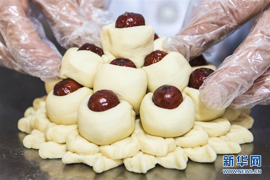 1月25日,河北棗強(qiáng)一家食品公司的面點(diǎn)師在手工制作花糕。 春節(jié)臨近,河北省棗強(qiáng)縣面食加工廠的面點(diǎn)師傅們忙著趕制花糕、花饃等傳統(tǒng)面食,以供應(yīng)節(jié)日市場(chǎng)。當(dāng)?shù)赜羞^年蒸花糕、做花饃的習(xí)俗,寓意步步登高,生活一年比一年好。 新華社記者 李曉果攝