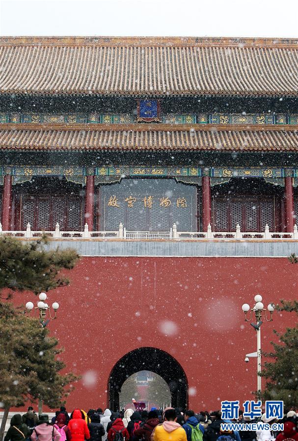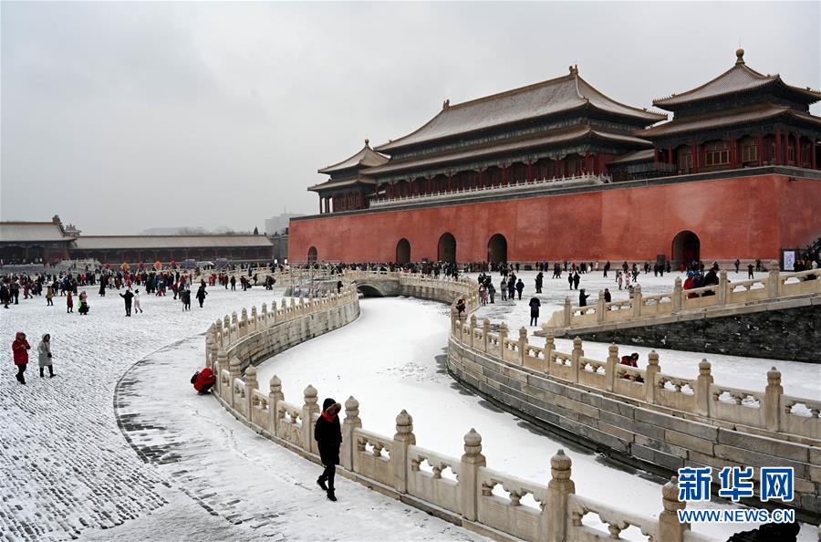 2月14日,游客在雪中游覽北京故宮。 當(dāng)日,北京降雪,大批游人來(lái)到故宮游覽賞雪。 新華社記者 羅曉光 攝