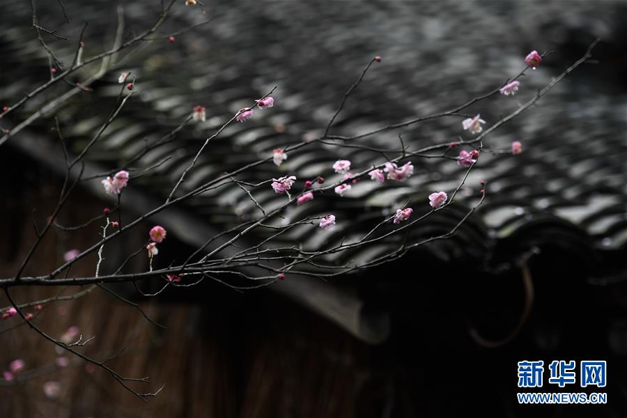 2月17日在杭州西溪濕地國(guó)家公園西溪梅墅旁拍攝的梅花。