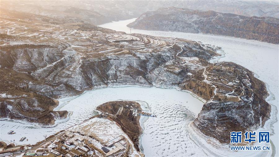 這是2月17日無(wú)人機(jī)拍攝的老牛灣雪景。黃河老牛灣位于山西省和內(nèi)蒙古自治區(qū)交界處。