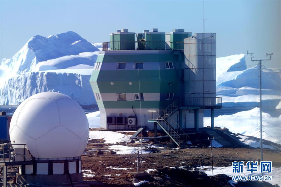 這是中山站標(biāo)志性建筑“六角樓”附近的冰山群(2月14日攝)。新華社記者 劉詩(shī)平 攝