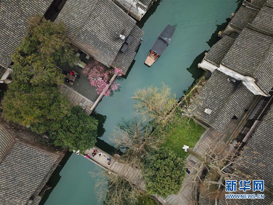 2月25日,烏鎮(zhèn)景區(qū)內(nèi)春意萌動(無人機(jī)拍攝)。 隨著氣溫升高,浙江省桐鄉(xiāng)市烏鎮(zhèn)景區(qū)春意萌動。 新華社記者翁忻旸攝