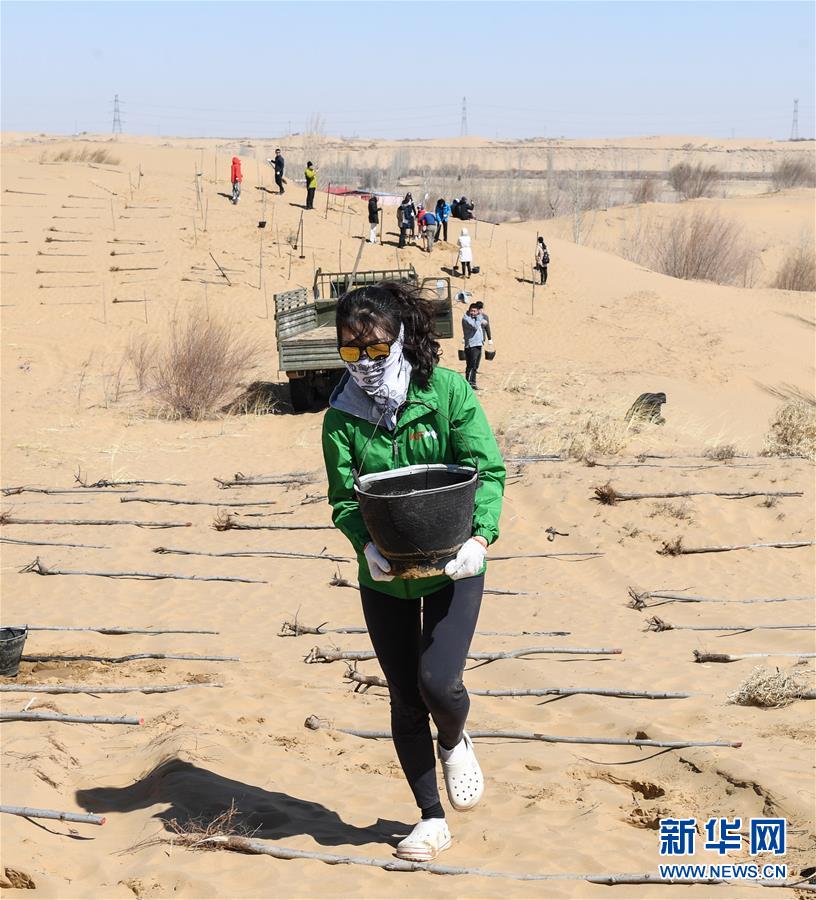 3月31日,一名青年志愿者正在取水澆灌。 當(dāng)日,200余名中韓兩國青年志愿者來到內(nèi)蒙古自治區(qū)達拉特旗庫布其沙漠種樹。2006年起,中國國際青年交流中心與韓國韓中文化青少年協(xié)會組織兩國青年志愿者在庫布其沙漠植樹,參與防沙固沙項目。截至目前已植樹850多萬株,造林3萬多畝。 新華社記者 劉磊 攝