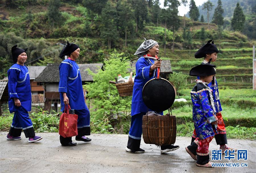 4月7日,苗族群眾挑著野炊所需用具,走在祭“巫耶”民俗活動途中。4月6日至7日,在貴州省黔東南苗族侗族自治州劍河縣觀么鎮(zhèn)新民村和新合村,來自劍河縣和三穗縣的苗族同胞歡聚一堂,通過民族歌舞展演、非遺手工藝展示、千戶祭“巫耶”、跳蘆笙舞等形式,與來賓一起歡慶2019年高雍苗族“三月三”民俗文化節(jié)。 新華社記者 楊文斌 攝