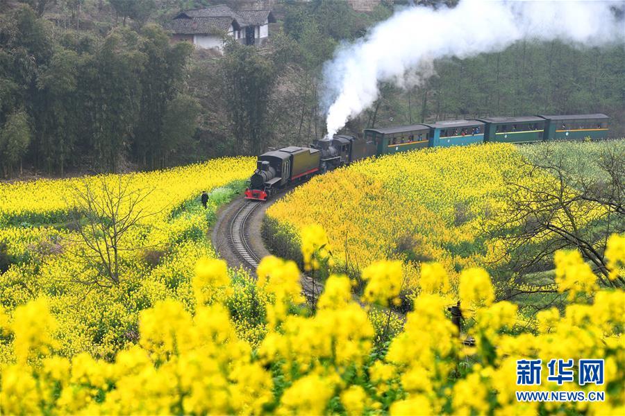 初春時(shí)節(jié),在花海中穿行的嘉陽小火車迎來了每年的旅游旺季,眾多游客慕名前來乘坐。