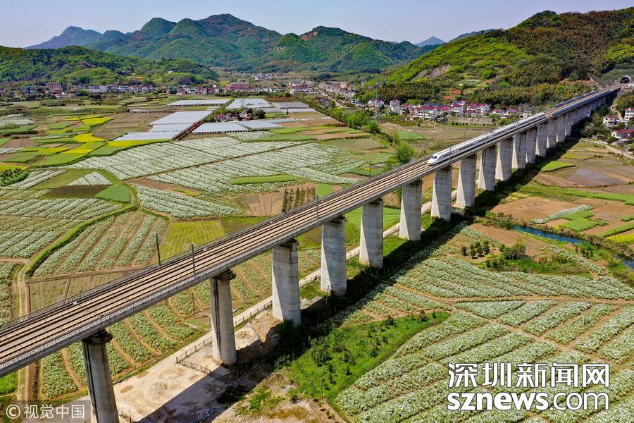 2019年4月8日,一列高鐵列車從京福高鐵安徽銅陵段一片盛開的鳳丹花海中駛過。隨著氣溫回升,安徽省銅陵市境內(nèi)的鳳丹競(jìng)相綻放,高鐵列車穿行其間,成為春日里一道美麗的風(fēng)景線。