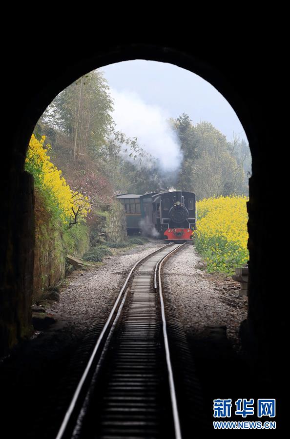 3月20日,一列嘉陽(yáng)小火車(chē)經(jīng)過(guò)老鷹嘴段。