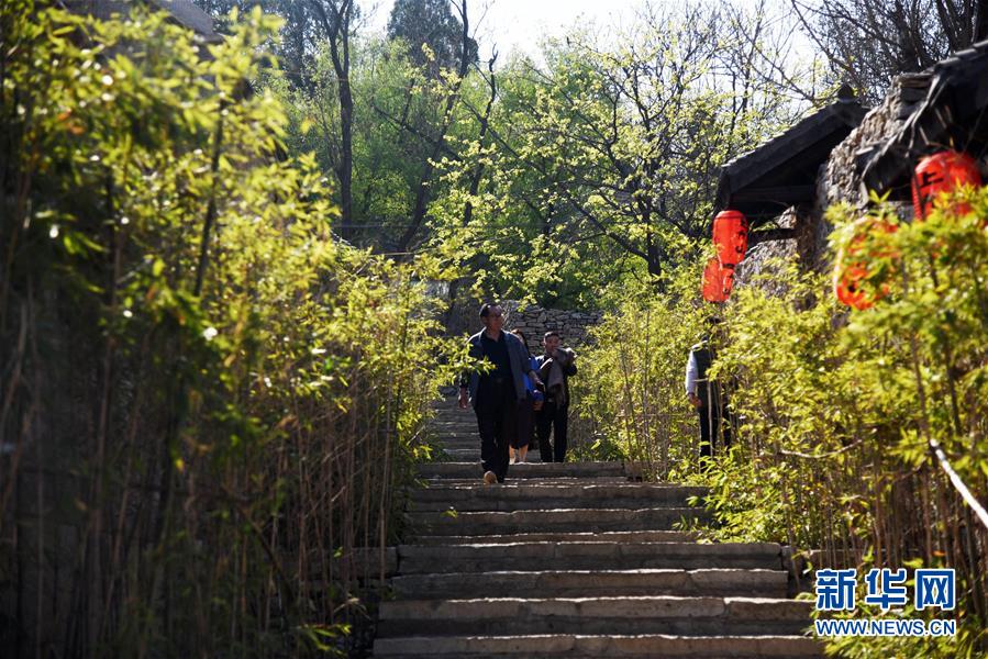 3月31日,游客在上九山村游覽。山東省鄒城市石墻鎮(zhèn)上九山村始建于宋代,是一座依山而建的石頭村,有明清建筑風(fēng)格的古民居300余套,古樸傳統(tǒng)的村貌吸引眾多游客。2019年1月,上九山村入選第七批中國(guó)歷史文化名村。 新華社記者 王凱 攝