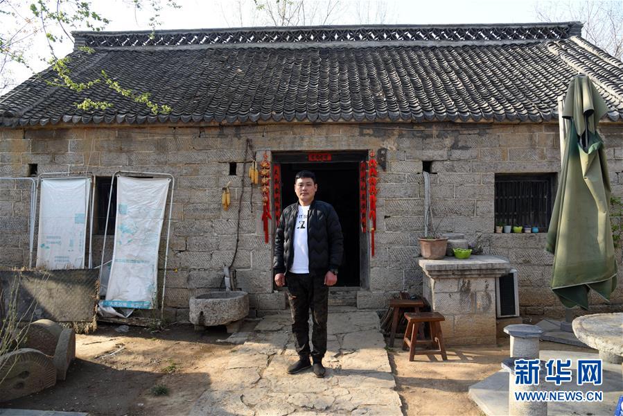 鄭磊在山東省鄒城市石墻鎮(zhèn)上九山景區(qū)內(nèi)第一家農(nóng)家樂(lè)“上九人家”院內(nèi)留影(3月31日攝)。 新華社記者王凱攝