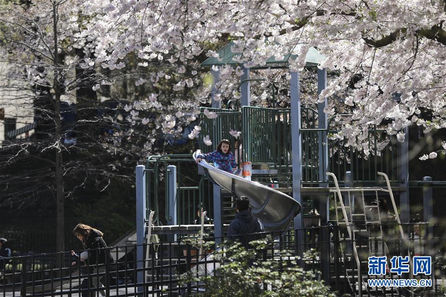 4月16日,孩子們?cè)诿绹?guó)紐約中央公園的一處游樂(lè)場(chǎng)玩耍。  新華社記者 王迎 攝