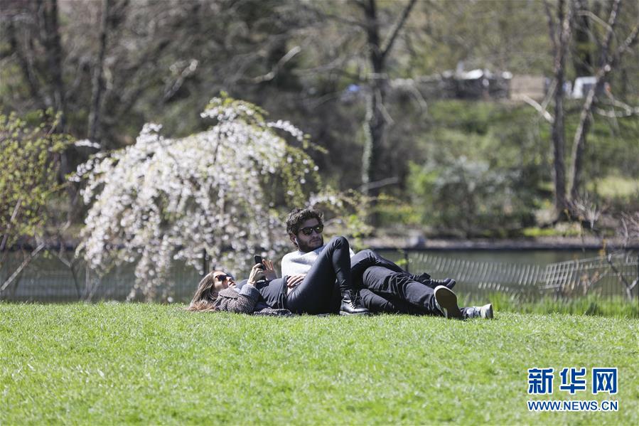 4月16日,人們?cè)诿绹?guó)紐約中央公園享受春光。  新華社記者 王迎 攝