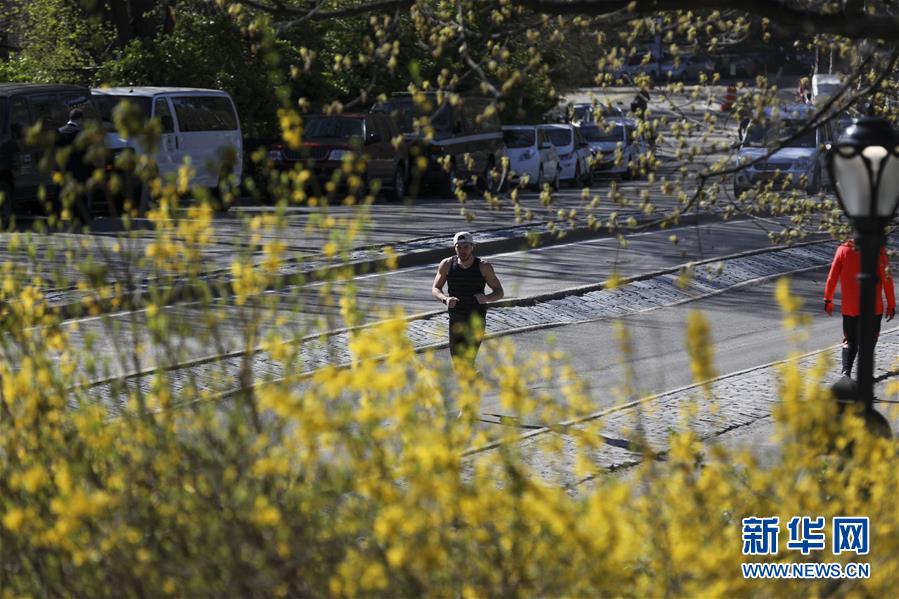 4月16日,一名男子在美國(guó)紐約中央公園跑步。  新華社記者 王迎 攝