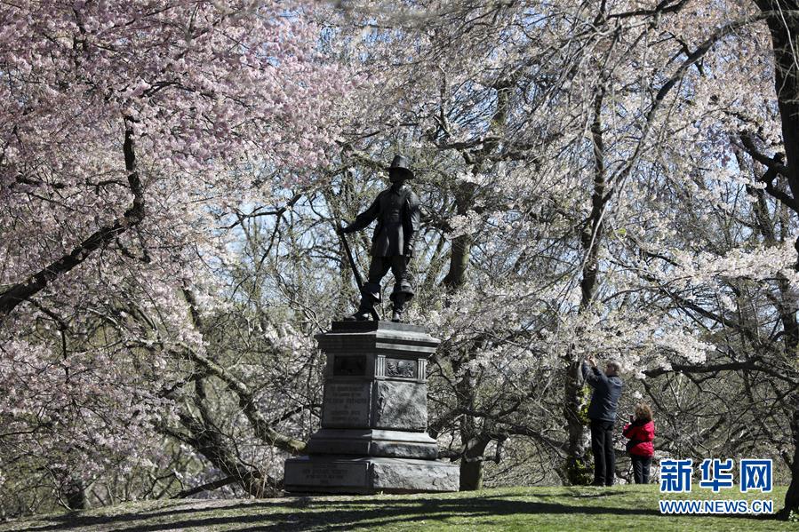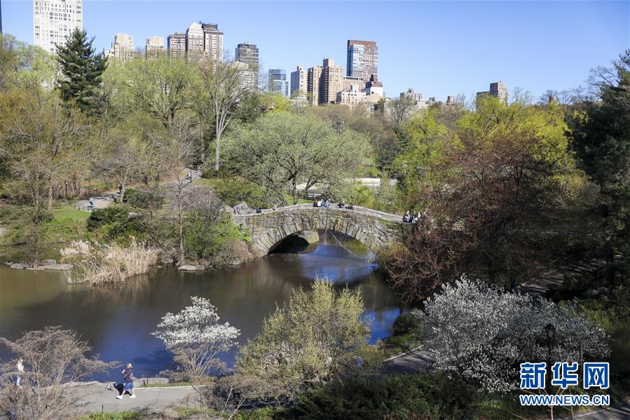4月16日,人們?cè)诿绹?guó)紐約中央公園游覽。  新華社記者 王迎 攝