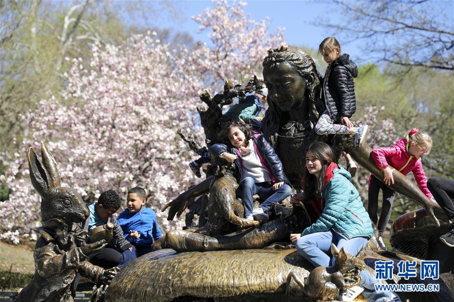 4月16日,孩子們?cè)诿绹?guó)紐約中央公園游玩。  新華社記者 王迎 攝