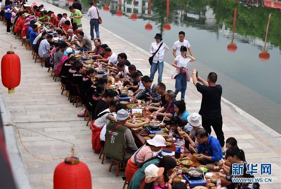 4月18日,游客在臺(tái)江縣參加苗族姊妹節(jié)長(zhǎng)桌宴體驗(yàn)活動(dòng)。 當(dāng)日,貴州省黔東南苗族侗族自治州臺(tái)江縣迎來(lái)一年一度的苗族姊妹節(jié)。節(jié)日期間將舉行苗族盛裝游演、千人長(zhǎng)桌宴、千人游方體驗(yàn)、苗族手工創(chuàng)意大賽等一系列活動(dòng)。 姊妹節(jié)是臺(tái)江縣苗族同胞的傳統(tǒng)節(jié)日,2006年被列入第一批國(guó)家級(jí)非物質(zhì)文化遺產(chǎn)名錄。 新華社記者 楊文斌 攝