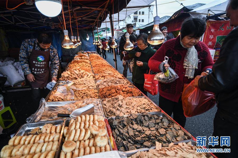 11月19日,人們在廟會現(xiàn)場購買當(dāng)?shù)孛朗场?新華社記者 徐昱 攝