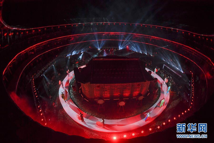 4月27日,小模特身穿民族服飾展示土樓當(dāng)?shù)氐姆俏镔|(zhì)文化遺產(chǎn)竹馬戲。 當(dāng)日,土樓光語國際時(shí)尚大秀在福建省南靖縣的土樓裕昌樓內(nèi)舉行。這場融匯文化、時(shí)尚與旅游元素的大秀,通過傳統(tǒng)與時(shí)尚的有機(jī)融合,展現(xiàn)南靖土樓及文化的魅力和風(fēng)采。 新華社記者魏培全攝