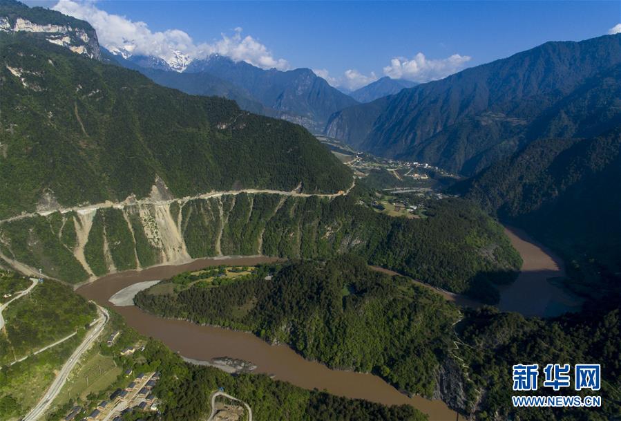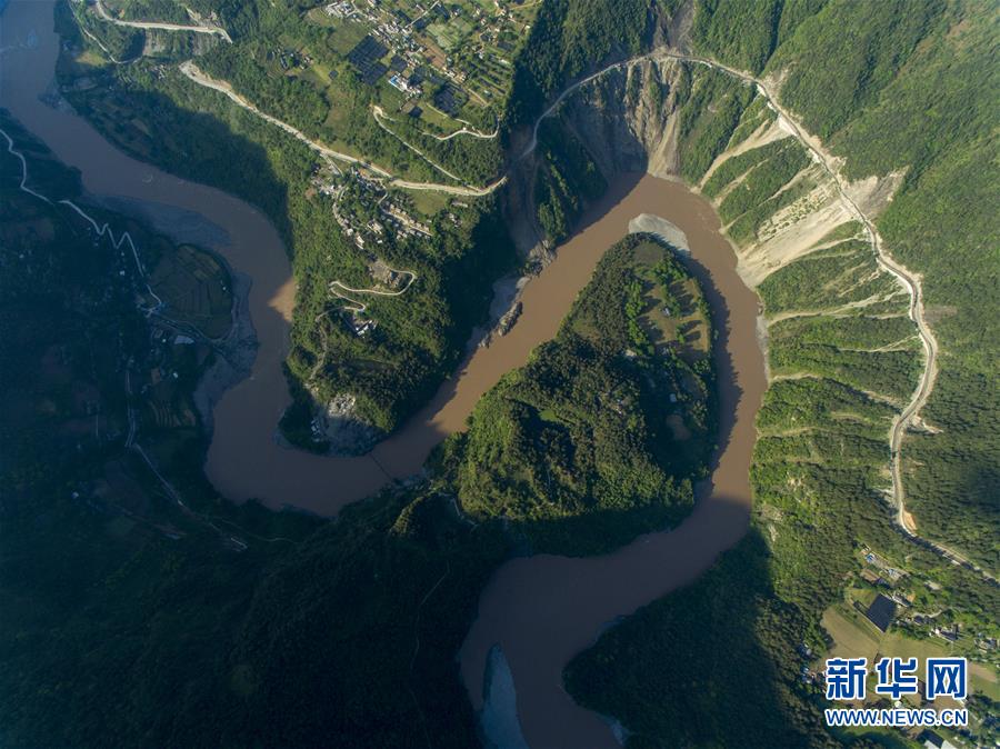 這是無人機(jī)拍攝的“長江第一灣”一景(3月17日攝)?!伴L江第一灣”位于云南省麗江市玉龍納西族自治縣石鼓鎮(zhèn),萬里長江從青藏高原奔騰而下,與瀾滄江、怒江一起在橫斷山脈的高山深谷中穿行形成并流的壯麗景觀。金沙江在麗江石鼓鎮(zhèn)突然以急轉(zhuǎn)彎轉(zhuǎn)向東北,形成一個宛若“V”字形的大轉(zhuǎn)彎,得名“長江第一灣”。春日里,“長江第一灣”江水青碧,美景迷人。 新華社記者胡超攝
