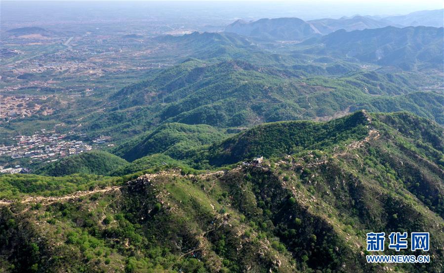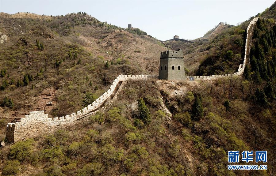 這是4月19日拍攝的黃崖關(guān)長(zhǎng)城景區(qū)(無(wú)人機(jī)拍攝)。新華社記者 李然 攝