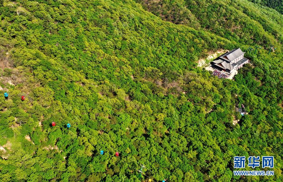 一處建筑坐落在盤山風(fēng)景名勝區(qū)的森林中(5月2日無(wú)人機(jī)拍攝)。新華社記者 岳月偉 攝